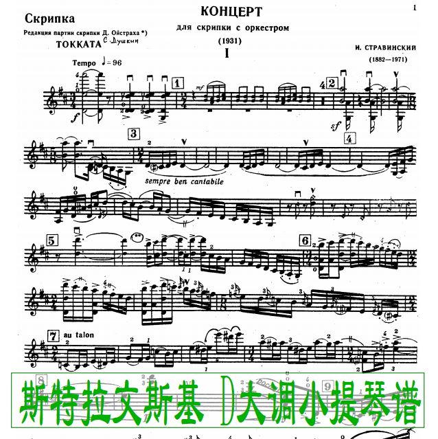 斯特拉文斯基 D大调小提琴协奏曲 小提琴谱 原版正谱