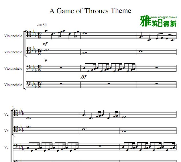 权力的游戏Game of Thrones大提琴二重奏总谱 分谱