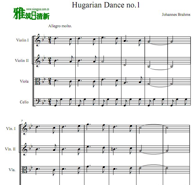 勃拉姆斯 匈牙利舞曲第1号弦乐四重奏谱