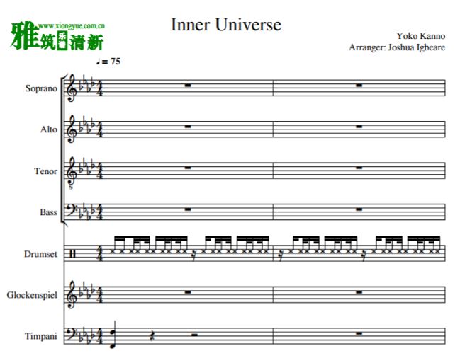 攻壳机动队OP Inner Universe SATB四声部阿卡贝拉合唱谱打击乐伴奏谱