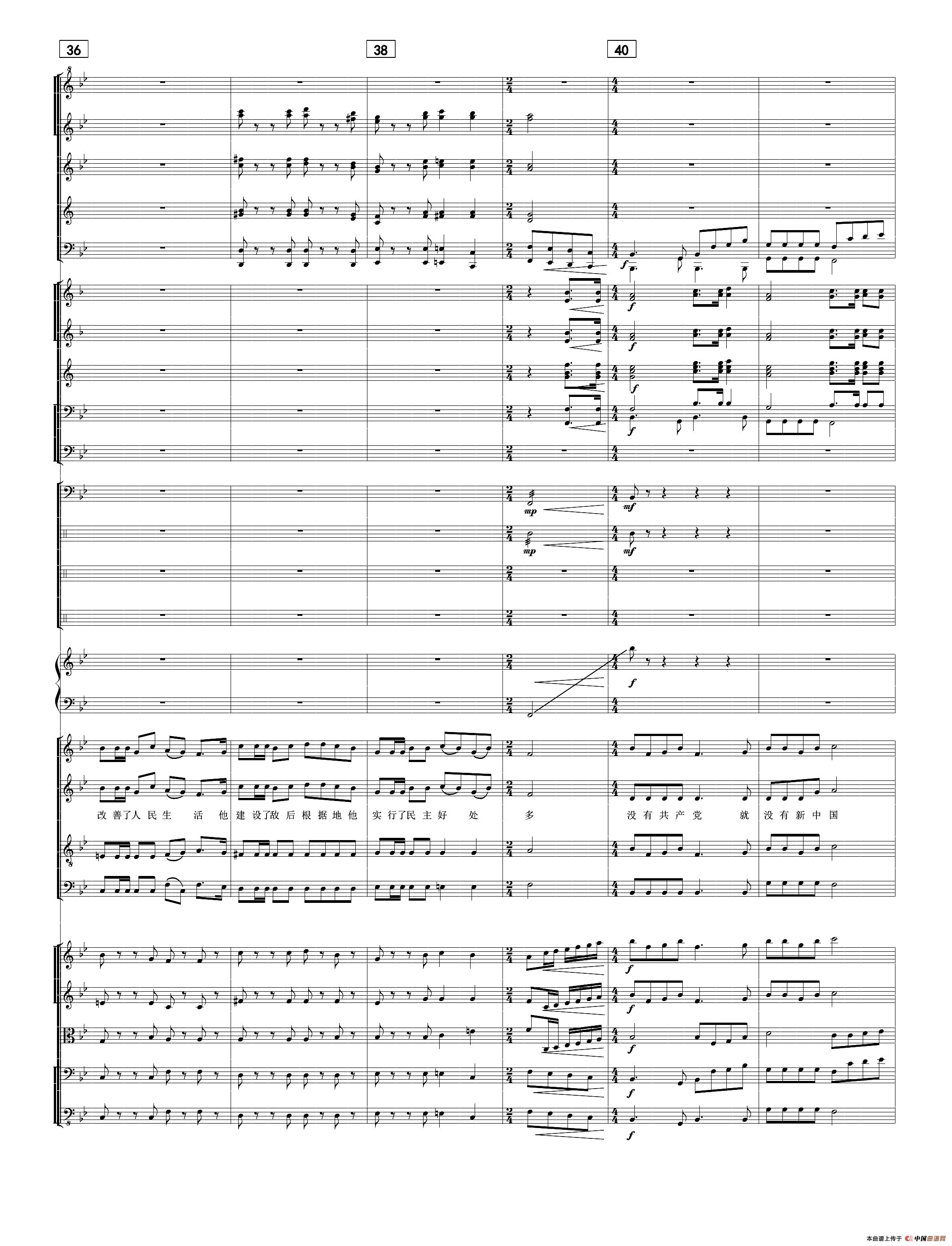 没有共产党就没有新中国简谱 刘聪编配 正谱 合唱曲谱 中国曲谱网
