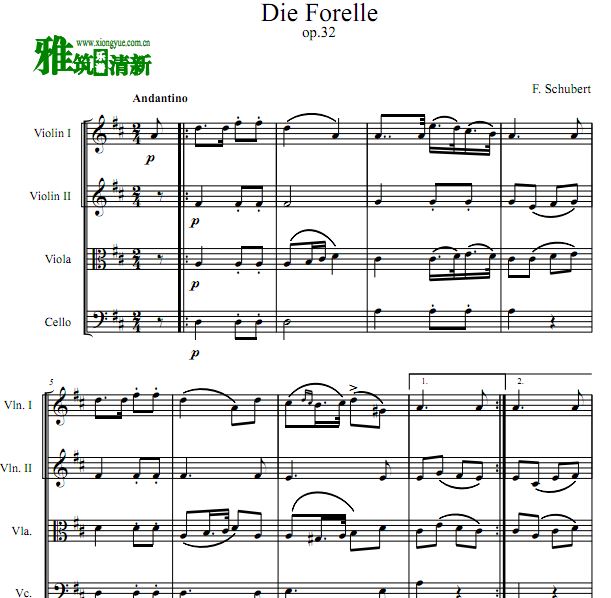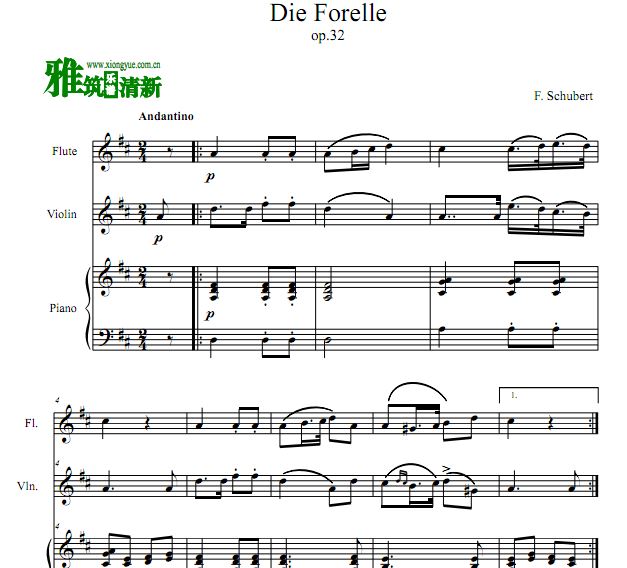 明朗靓丽 舒伯特 鳟鱼五重奏 附小提琴谱