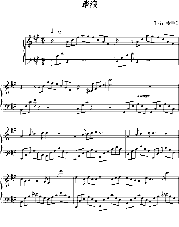 踏浪钢琴谱 独奏谱 中国名曲 钢琴独奏视频 原版钢琴谱 乐谱 曲谱 五线谱 六线谱 高清免费下载