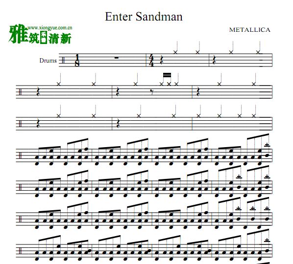 金属乐队鼓谱 METALLICA Enter Sandman鼓谱
