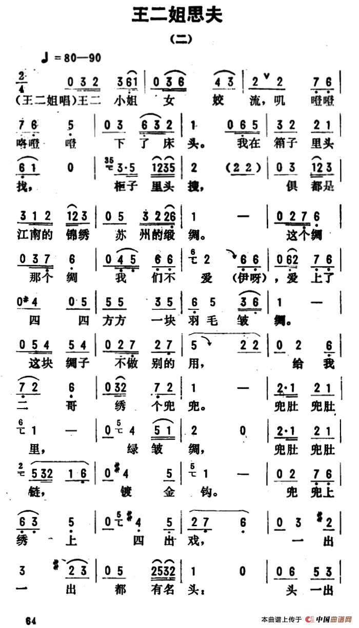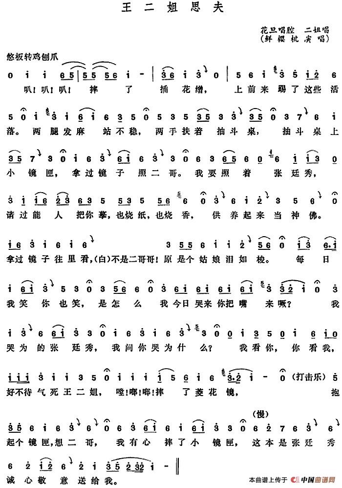 王二姐思夫戏曲谱 戏曲曲谱 中国曲谱网