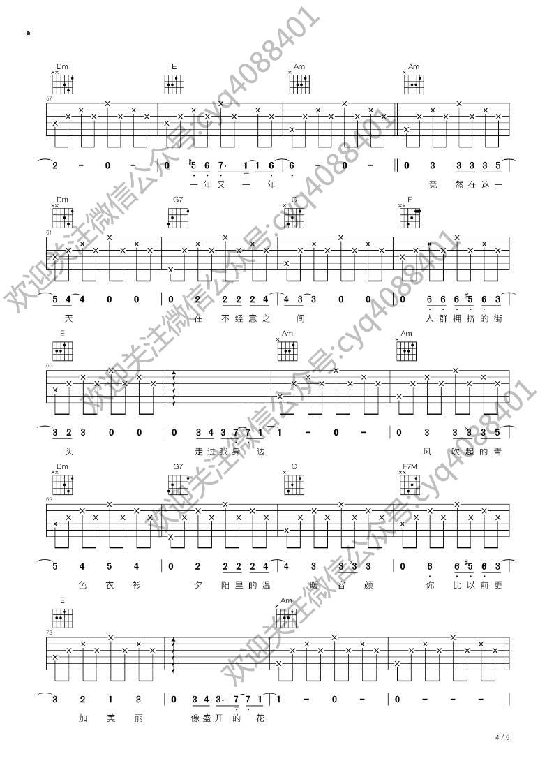吉他谱 难忘的一天 C调吉他弹唱谱