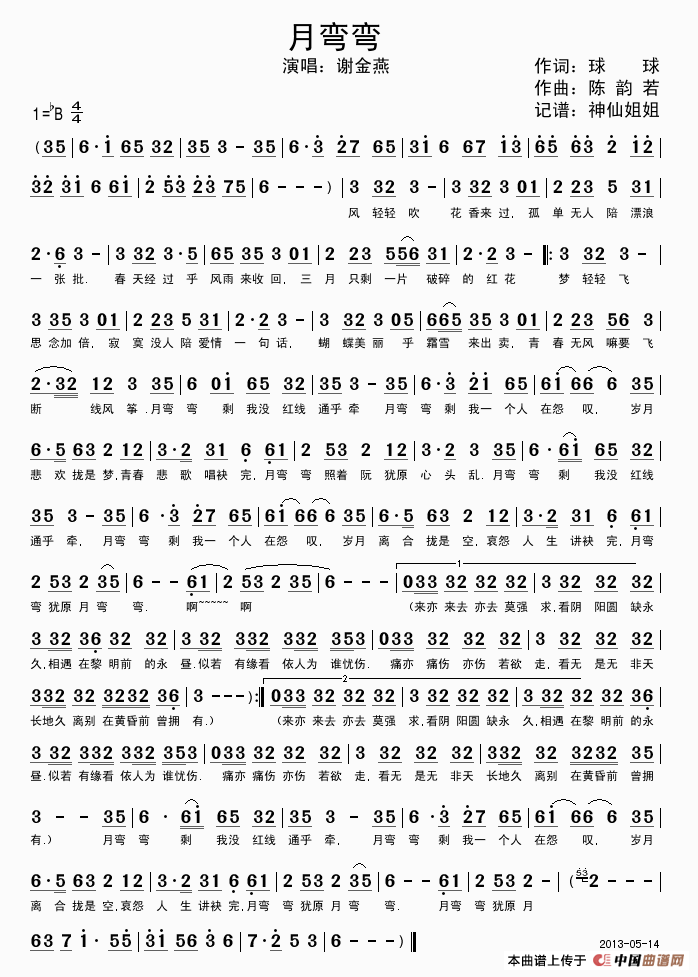 月弯弯简谱_月弯弯简谱 燕十三词曲 桃李醉春风个人制谱园地 中国曲谱网