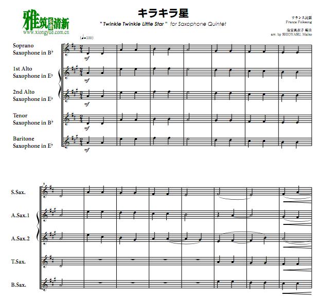 小星星萨克斯五重奏总谱