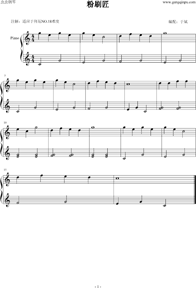 粉刷匠钢琴谱 独奏谱 世界名曲 钢琴独奏视频 原版钢琴谱 乐谱 曲谱 五线谱 六线谱 高清免费下载