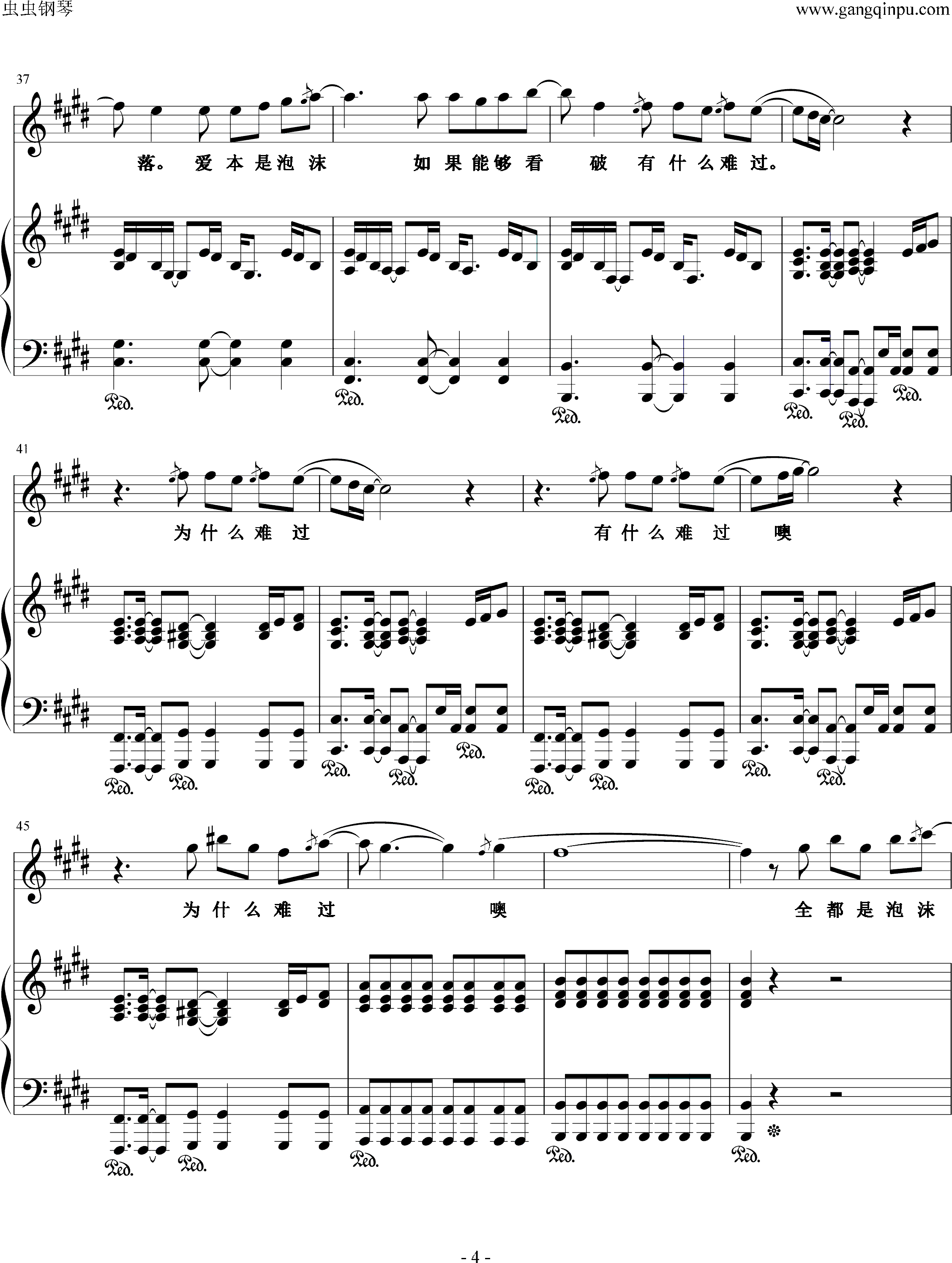 泡沫钢琴谱 E调弹唱谱 邓紫棋 钢琴弹唱视频 原版钢琴谱 乐谱 曲谱 五线谱 六线谱 高清免费下载