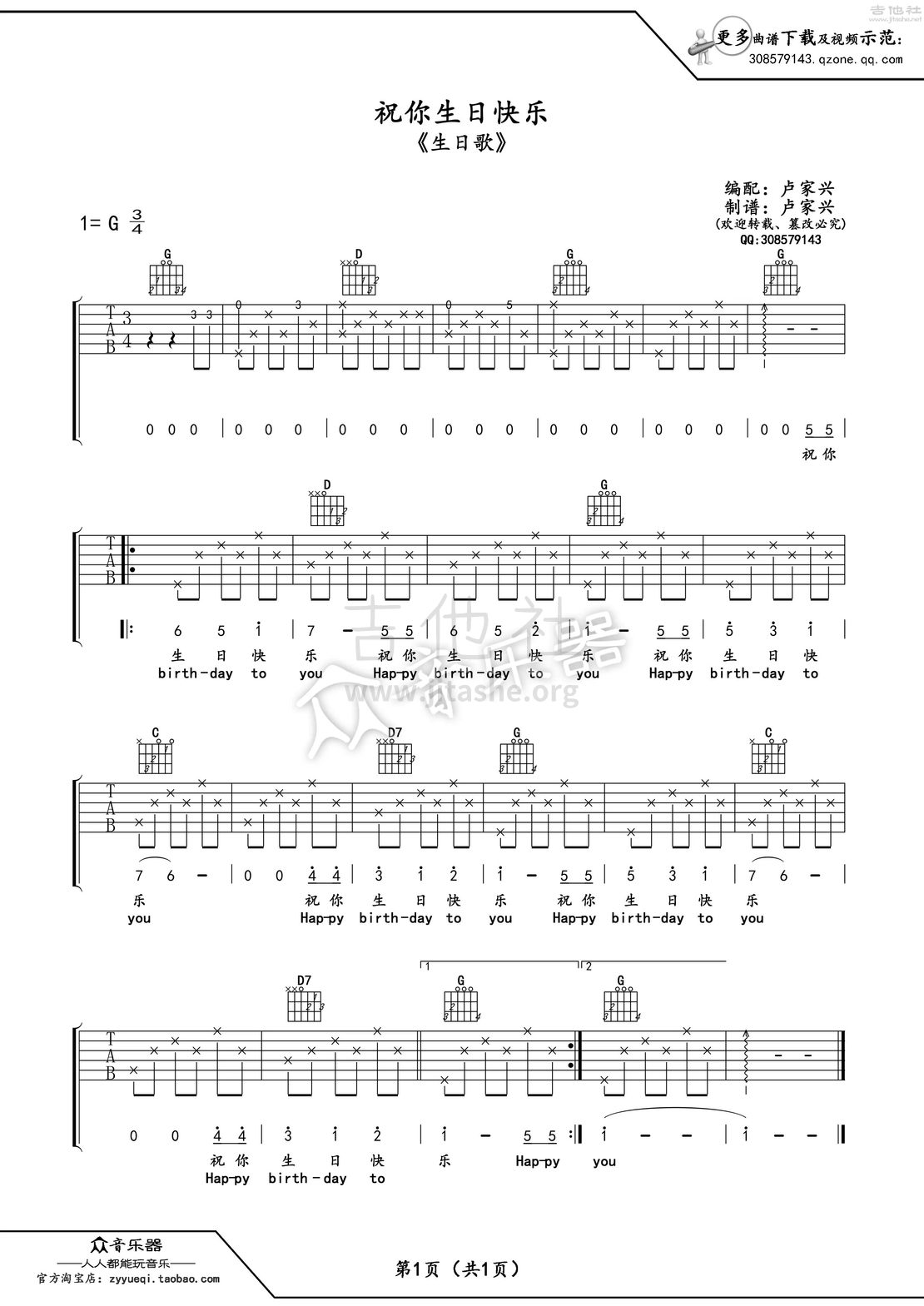 吉他祝你生日快乐谱简单的六线谱 发照片