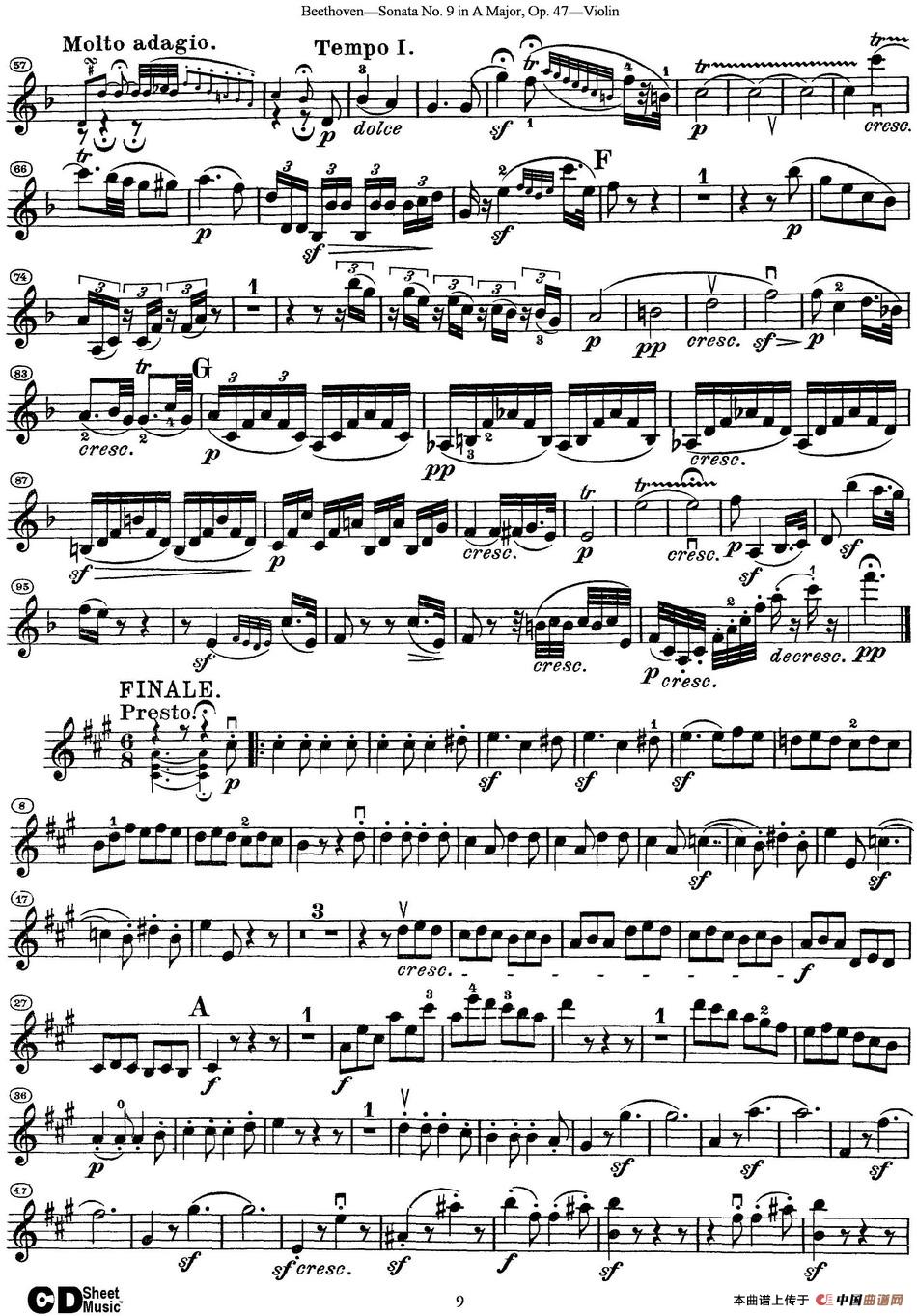 Violin Sonata No.9 in A Major Op.47提琴谱 器乐乐谱 中国曲谱网
