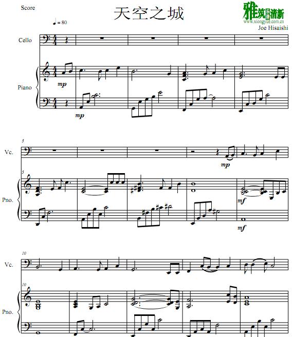 久石让 天空之城大提琴钢琴重奏谱