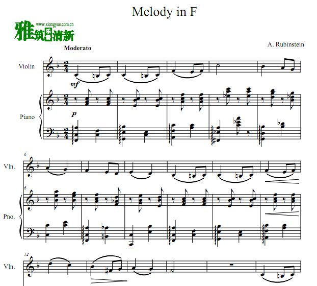 鲁宾斯坦 Melody in F小提琴钢琴伴奏谱