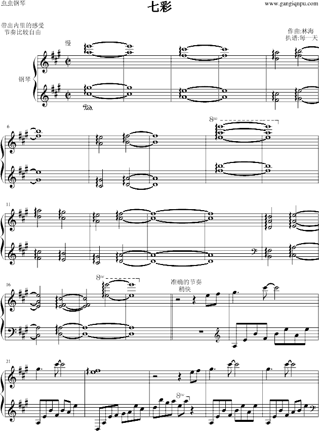 七彩钢琴谱 独奏谱 林海 钢琴独奏视频 原版钢琴谱 乐谱 曲谱 五线谱 六线谱 高清免费下载