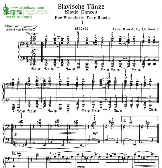斯拉夫舞曲作品46第一首四手联弹谱 带指法