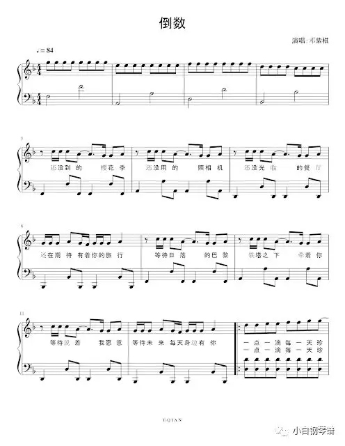 邓紫棋 倒数 钢琴版,附谱