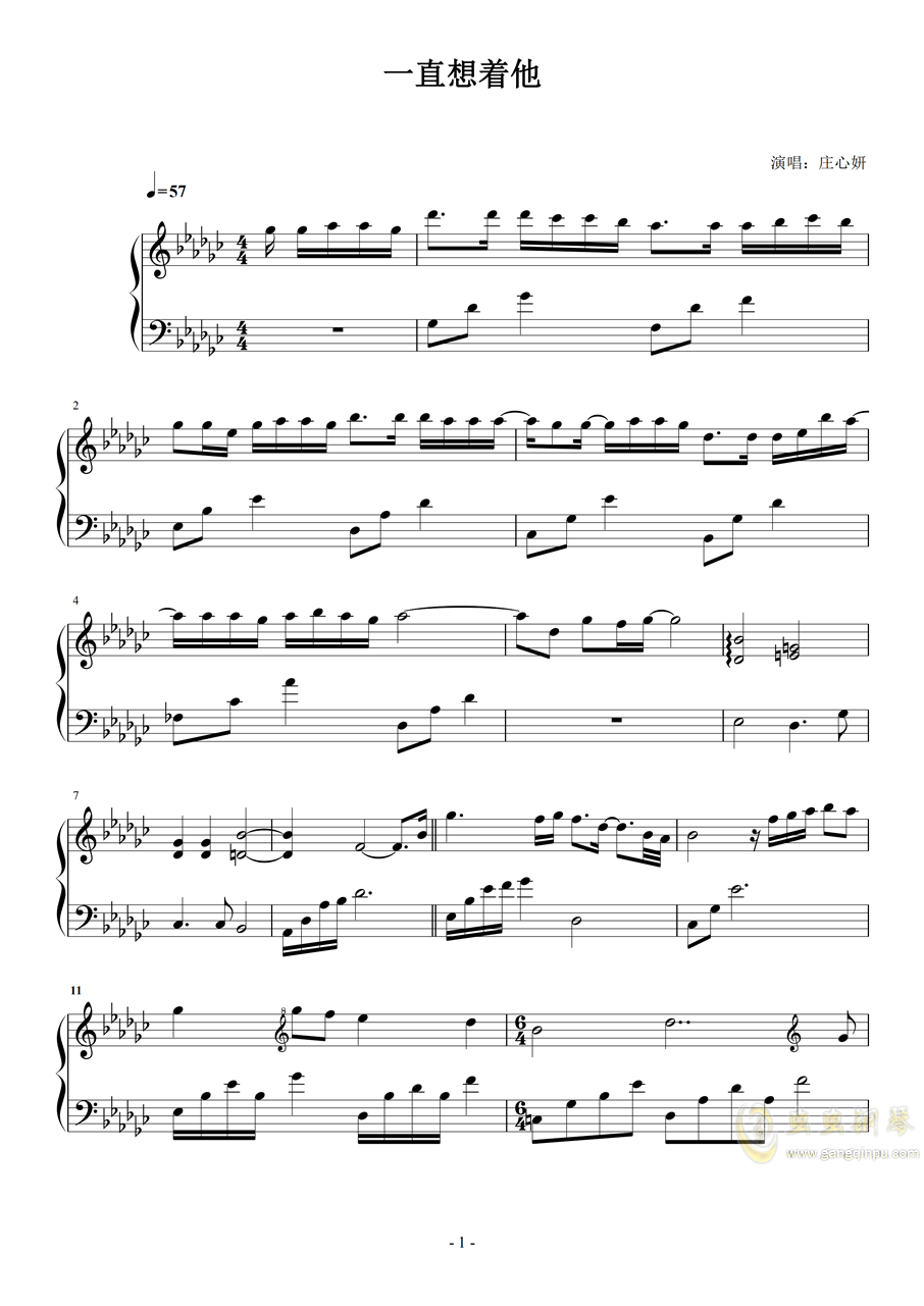 一直想着他 庄心妍钢琴谱 Gb调独奏谱 庄心妍 钢琴独奏视频 原版钢琴谱 乐谱 曲谱 五线谱 六线谱 高清免费下载
