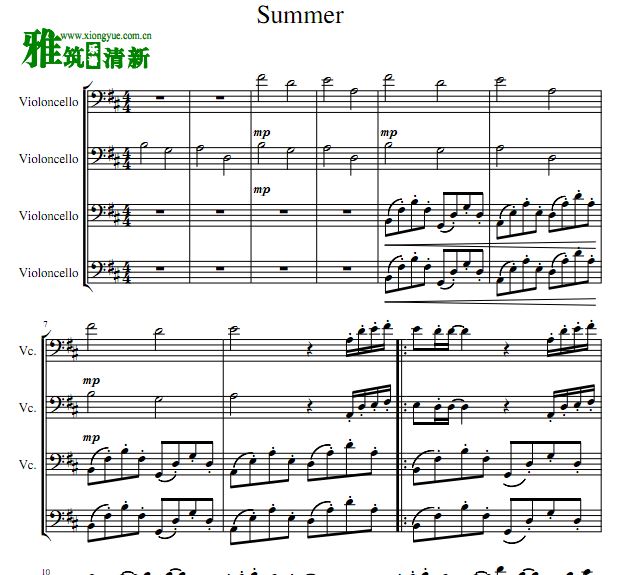 菊次郎的夏天 久石让 Summer大提琴四重奏谱