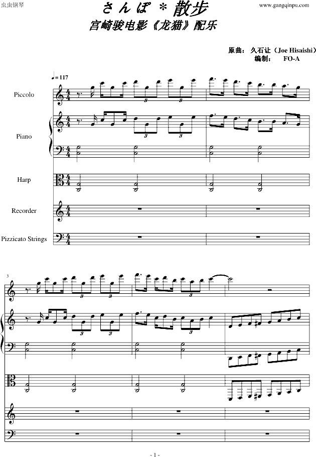 龙猫 散步钢琴谱 总谱 久石让 钢琴总谱视频 原版钢琴谱 乐谱 曲谱 五线谱 六线谱 高清免费下载