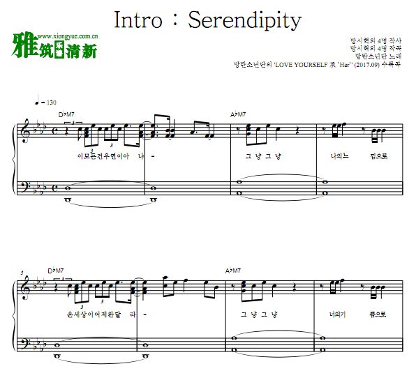 防弹少年团BTS Intro Serendipity钢琴独奏谱