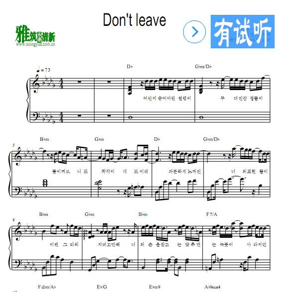 block b don t leave钢琴谱