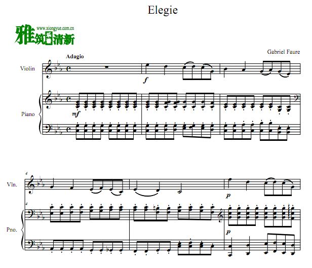 福雷 悲歌小提琴钢琴伴奏谱 Elegie