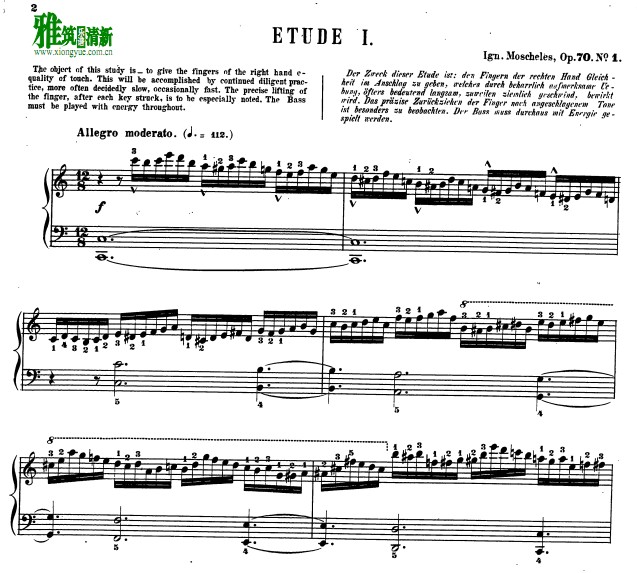 莫舍列斯 莫谢莱斯 Op70 No.1 带指法钢琴谱