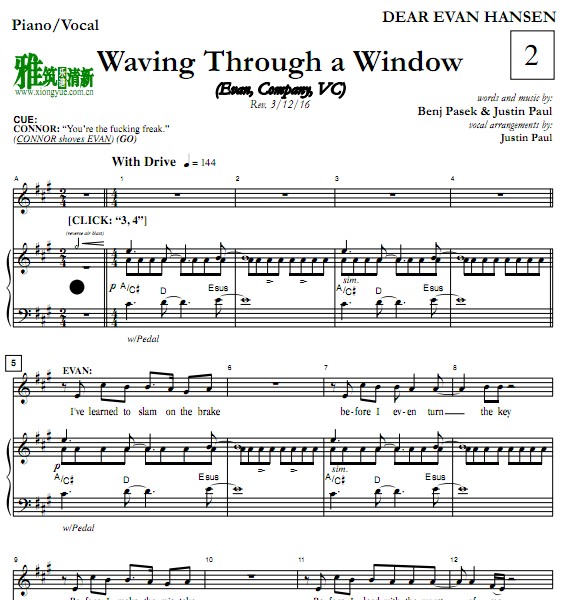 男生版DEAR EVAN HANSEN Waving Through A Window钢琴伴奏谱