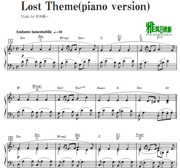 坂本龙钢琴谱 C调独奏谱 坂本龙一 钢琴独奏视频 原版钢琴谱 乐谱 曲谱 五线谱 六线谱 高清免费下载