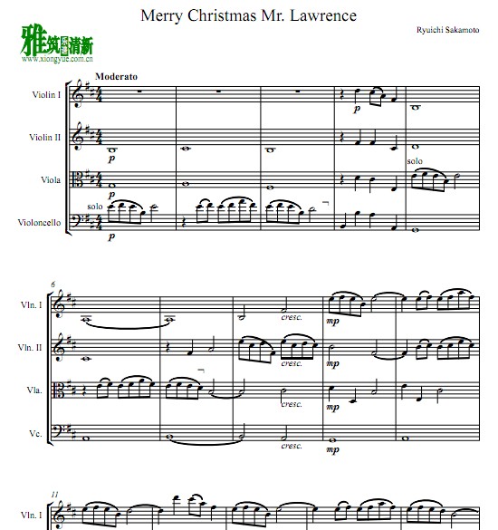 坂本龙一 圣诞快乐,劳伦斯先生弦乐四重奏谱