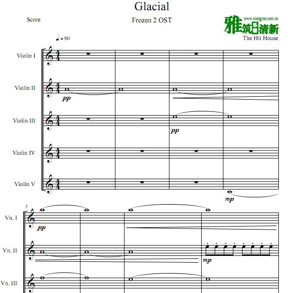 冰雪奇缘2 Glacial小提琴五重奏谱