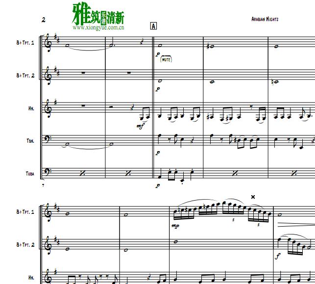 一千零一夜Arabian Nights铜管五重奏谱