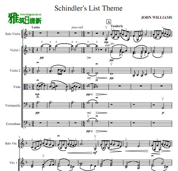 辛德勒名单主题曲弦乐六重奏谱 小提琴solo