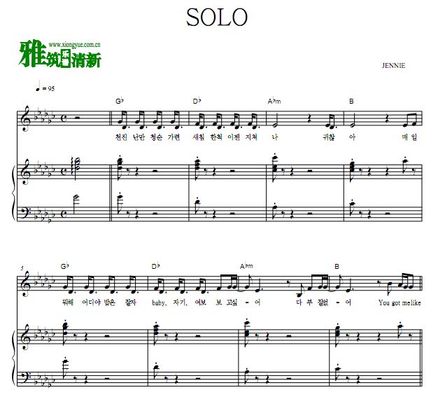 JENNIE SOLO钢琴伴奏谱 歌谱